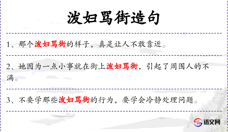 1. 【泼妇骂街】 - 泼妇:泼辣凶悍的妇女。象泼妇在街上当众谩骂。多指大肆攻击、谩骂别人。