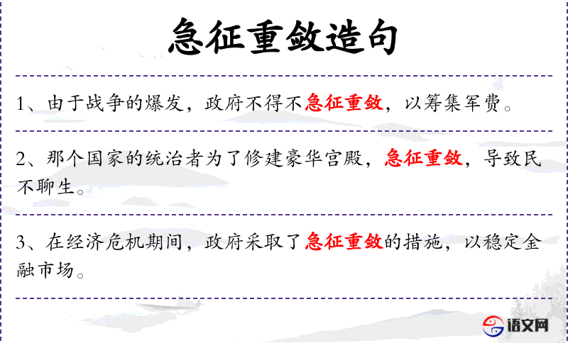 - 急征重敛:迅速且大量地征集或收集资金。