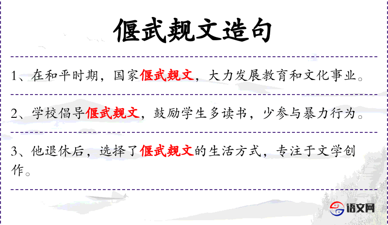 - 偃武觌文:意为停止军事活动,重视文化发展。