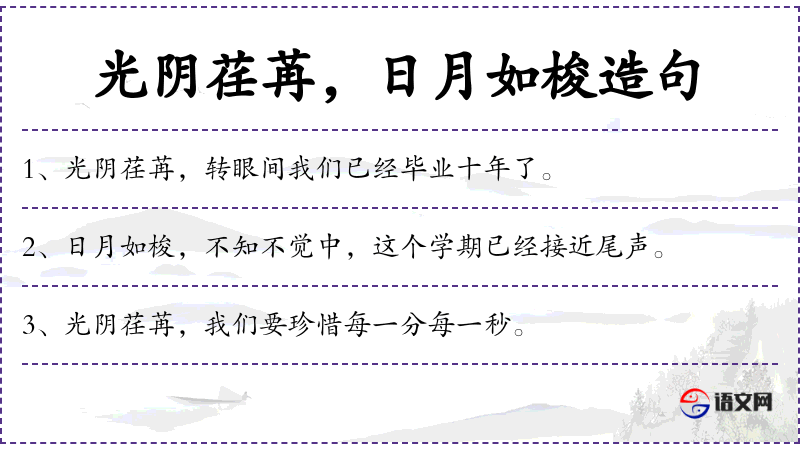 - 光阴荏苒:形容时间流逝得很快。