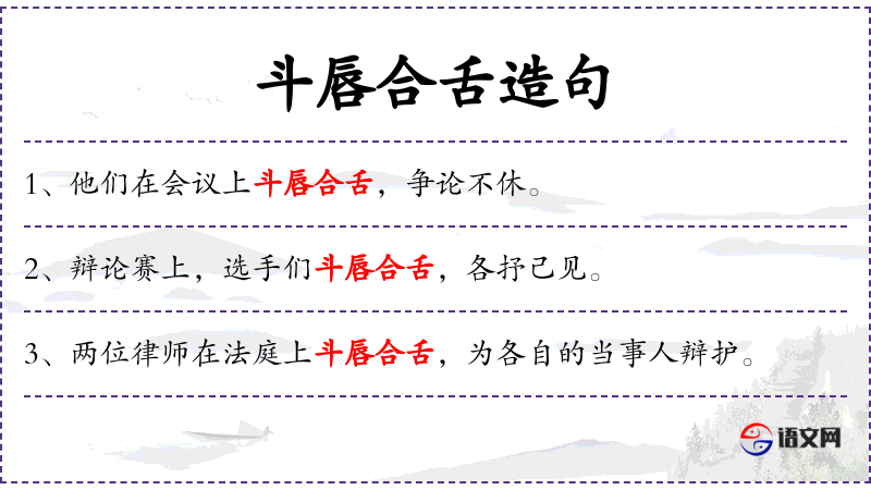 - 谓语:斗唇合舌,辩论