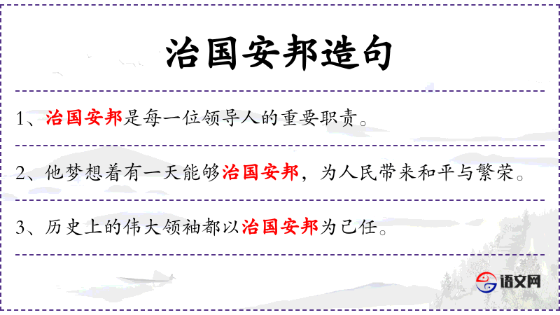 1. 【治国安邦】 治理国家,使之太平、安定。