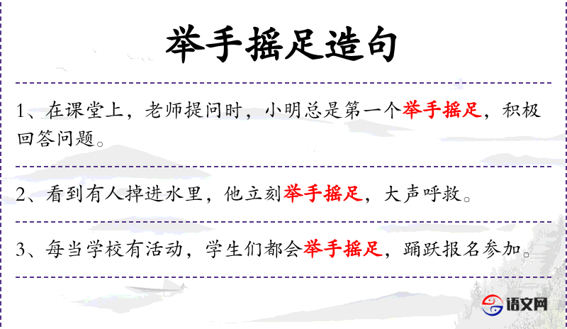 • 举手摇足:这个短语形象地描述了一个人在会议上的积极参与状态,可能意味着他非常活跃和热情。