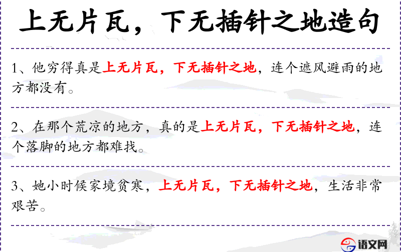 上无片瓦,下无插针之地造句列表