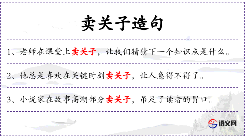 - 卖关子:一种修辞手法,故意不透露关键信息,以引起好奇心和兴趣。