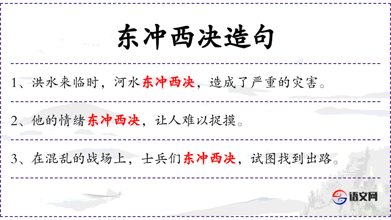 - 东冲西决:形容树木被风吹得东倒西歪,无法稳定。
