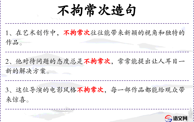 - 不拘常次:指不遵循常规或传统的方式,强调创新和灵活性。
