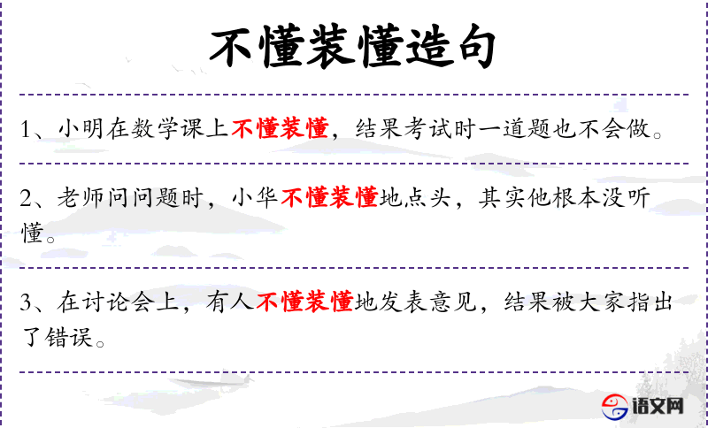 - 谓语:教、不懂装懂、坏了