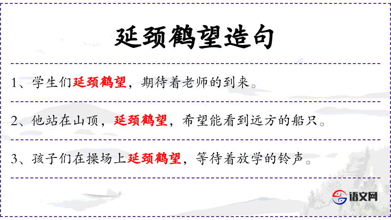 - 谓语:站、延颈鹤望、寻找