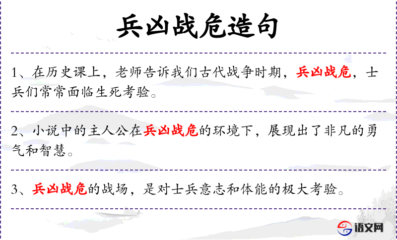 - 兵凶战危:形容战争的残酷和危险。