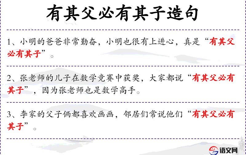 3. 【有其父必有其子】 - 有什么样的父亲一定会有什么样的儿子。形容父亲对子女的影响极大。