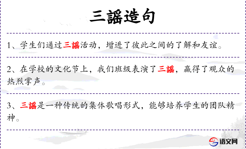 1. 【三謡】 - 指唐白居易所作的《朱藤谣》﹑《蟠木谣》﹑《素屏谣》。
