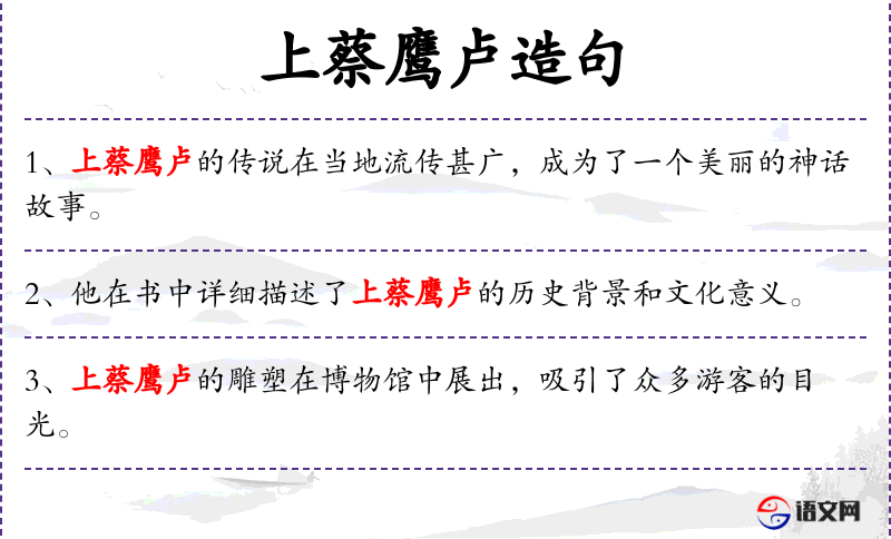 1. 【上蔡鹰卢】 - 谓牵犬臂鹰,出城打猎。