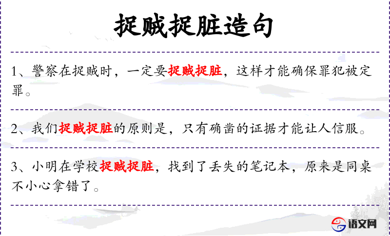 - 宾语补足语:做事情要捉贼捉脏,不能凭空猜测