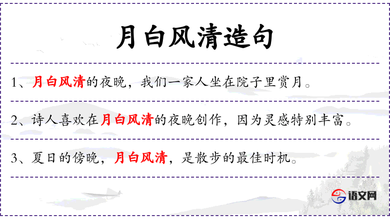 4. 【月白风清】 - 形容幽静美好的夜晚。