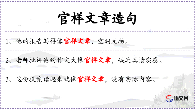 - 像官样文章:指写作风格正式、刻板,缺乏个性和创新。