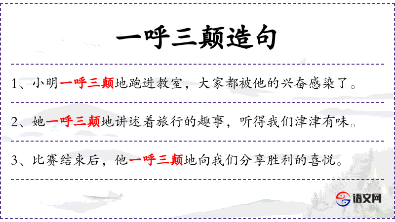 - 一呼三颠地:形容词性短语,形容动作急促、慌张。