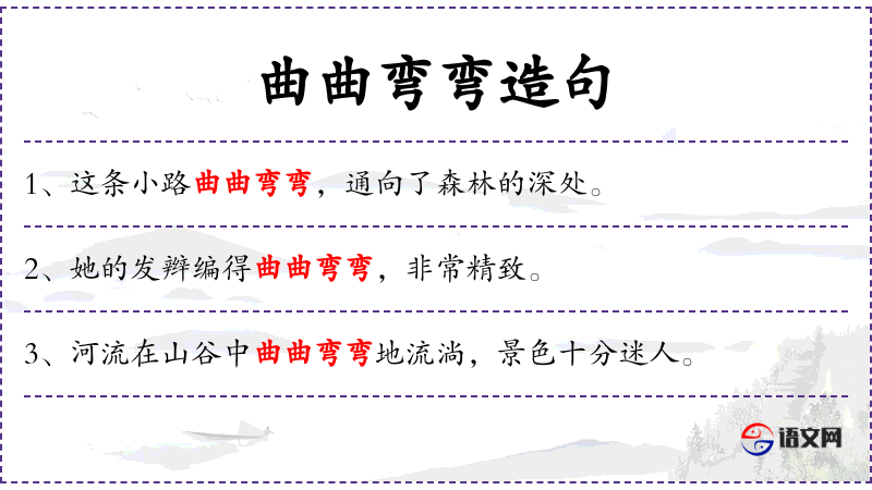 1. 【曲曲弯弯】 - 形容很多曲弯之处。