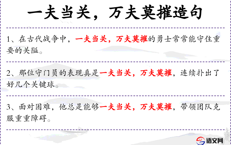 - 谓语:“真是一夫当关,万夫莫摧”