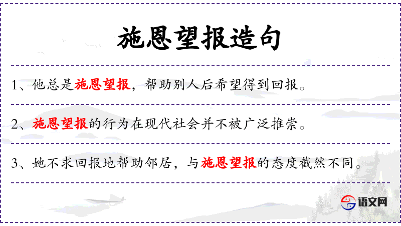 - 文化背景和社会习俗可能会影响人们对“施恩望报”行为的看法,不同文化对此可能有不同的评价标准。