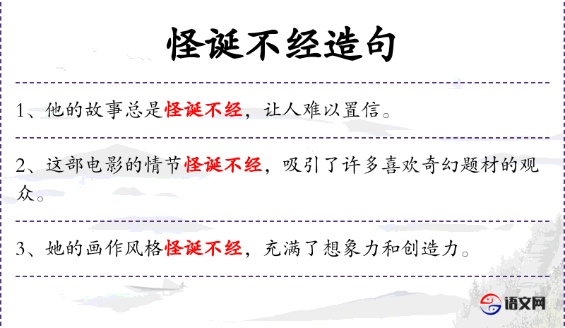- 怪诞不经:古怪、离奇、荒诞、不可思议