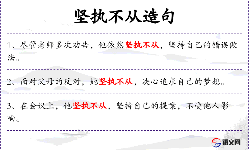 3. 【坚执不从】 坚持自己的主张,不听从别人的意见。