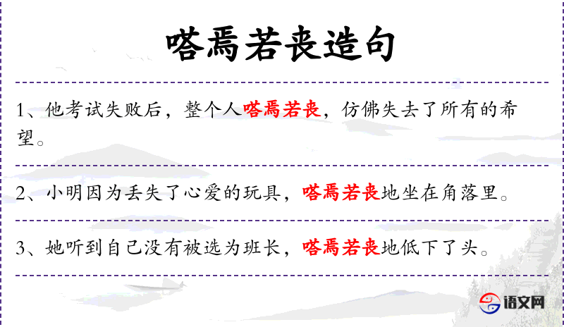 - 嗒焉若丧:成语,形容心情沮丧、失落的样子。