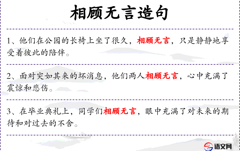 4. 【相顾无言】 - 指彼此相对说不出话来。