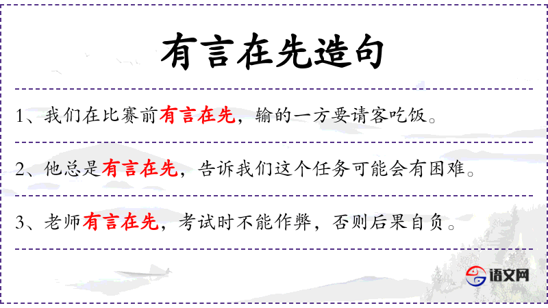 4. 【有言在先】 - 有话说在头里。指事先打了招呼。