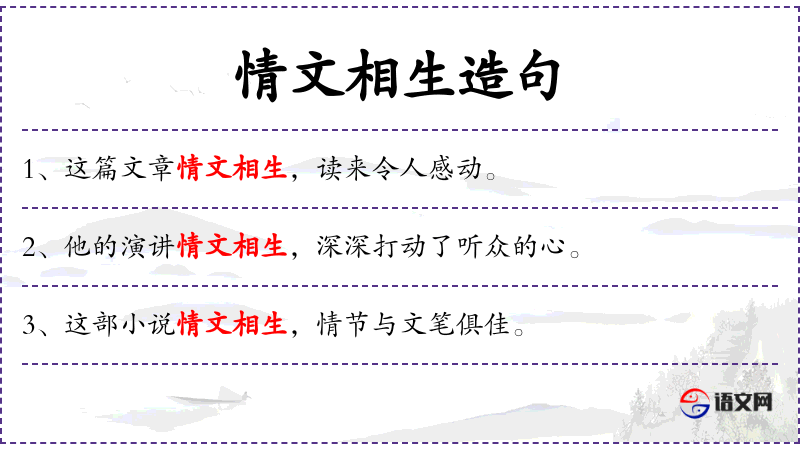 - 情文相生:形容文章或书信内容与情感自然融合,相互映衬。