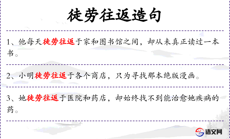 6. 【徒劳往返】 徒劳:白花力气。来回白跑。