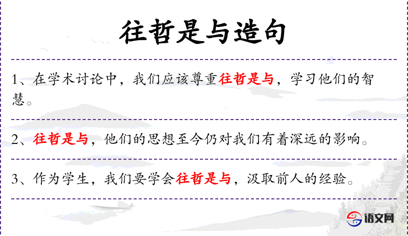 句子:“往哲是与,他们的思想至今仍对我们有着深远的影响。”