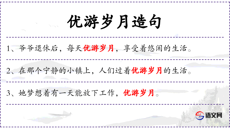 - “优游岁月”:名词短语,指悠闲自在地度过时间,通常指享受生活的美好时光。
