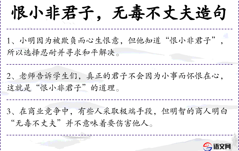- 直接宾语:“真正的君子不会因为小事而怀恨在心,这就是“恨小非君子”的道理。”