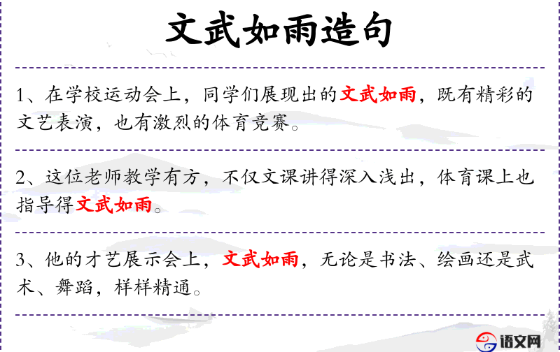“文武如雨”这个表达蕴含了**文化中对全面能力的赞美,类似于“文武双全”的成语,强调在文和武两方面都有出色的表现。
