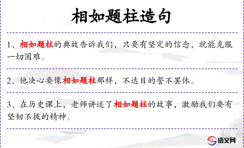2. 【相如题柱】 - 司马相如前往西安途经升仙桥时,在门柱上写下的誓言。形容立志求取功名的行为。