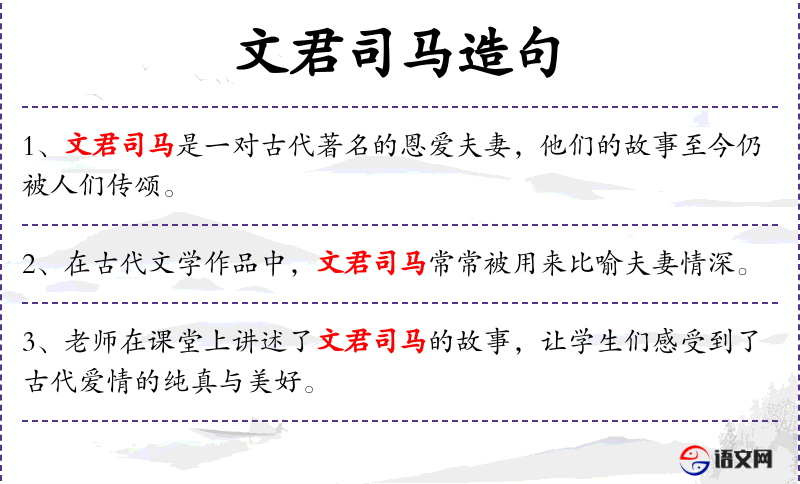 句子:“文君司马的传说激励着后人追求真挚的爱情和忠诚的伴侣。”