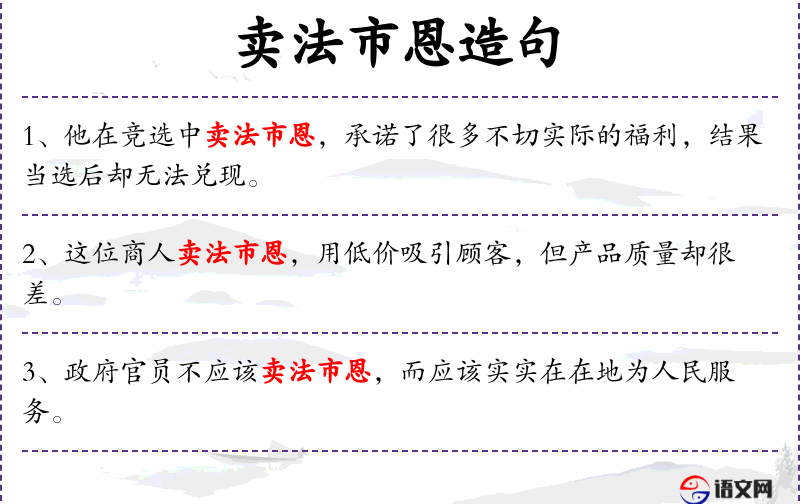 - 卖法市恩:指利用职权进行不正当的交易或施恩。