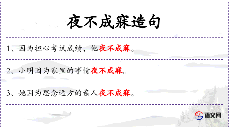 - 宾语:无直接宾语,但“夜不成寐”是一个动宾结构,表示“夜晚无法入睡”。