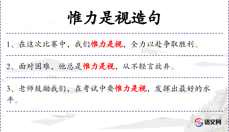 句子:“在这次比赛中,我们惟力是视,全力以赴争取胜利。”