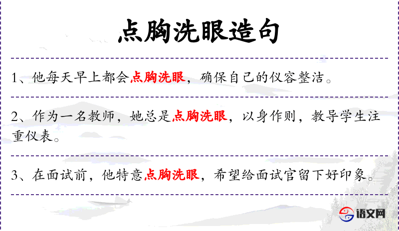 4. 【点胸洗眼】 - 指一洗尘俗,使人豁然明朗。