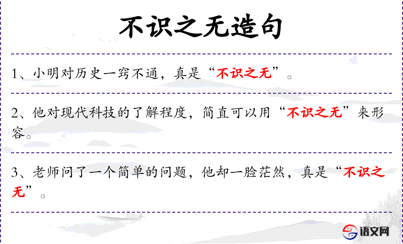 2. 【不识之无】 连“之”字、“无”字都不认识。形容人不识字,文化水平很低。