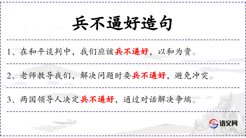 - 兵不逼好:这个短语可能是“兵不厌诈”的误用,正确的表达应该是“朋友之间应该不逼好,相互理解和支持”。