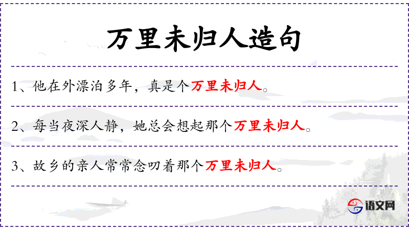 - 万里未归人:指离家很远且未归的人,具有强烈的情感色彩和故事性。
