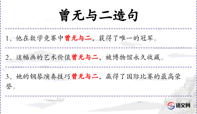 1. 【曾无与二】 - 独一无二,没有比得上的。