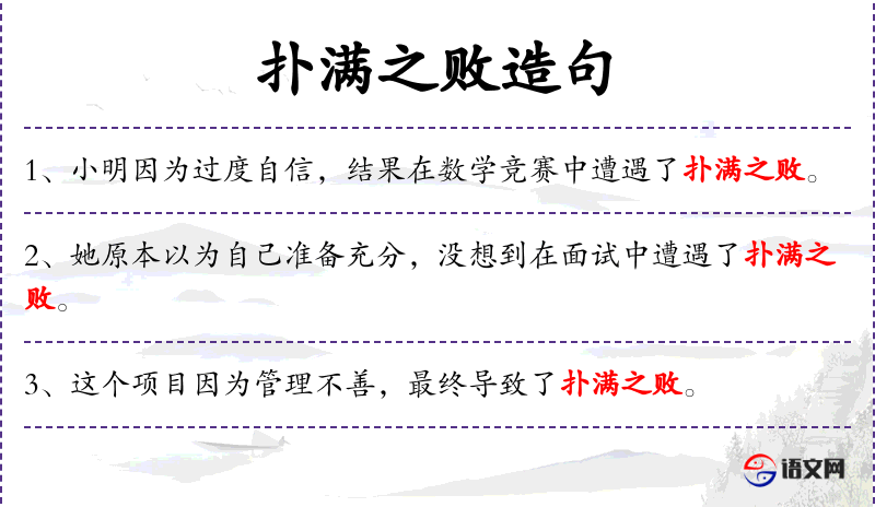 - 扑满之败:名词短语,可能是一个成语或特定表达,表示彻底的失败。