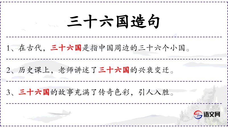1. 【三十六国】 指汉时西域诸国。大部在今新疆维吾尔自治区境内。《汉书.西域传序》"西域以孝武时始通,本三十六国,其后稍分至五十余,皆在匈奴之西,乌孙之南。"王先谦补注"三十六国者媠羌﹑楼兰﹑且末﹑小宛﹑精絶﹑戎卢﹑抔弥﹑渠勒﹑于阗﹑皮山﹑乌秅﹑西夜﹑子合﹑蒲犁﹑依耐﹑无雷﹑难兜﹑大宛﹑桃槐﹑休循﹑捐毒﹑莎车﹑疏勒﹑尉头﹑姑墨﹑温宿﹑j兹﹑尉犁﹑危须﹑焉耆﹑姑师﹑墨山﹑劫﹑狐胡﹑渠犁﹑乌垒。" 2.指古代相传的海外三十六国。《淮南子.墬形训》"凡海外三十六国自西北至西南方,有修股民﹑天民﹑肃慎民﹑白民﹑沃民﹑女子民﹑丈夫民﹑奇股民﹑一臂民﹑三身民;自西南至东南方,有结胸民﹑羽民﹑歡头国民﹑裸国民﹑三苗民﹑交股民﹑不死民﹑穿胸民﹑反舌民﹑豕喙民﹑凿齿民﹑三头民﹑修臂民;自东南至东北方,有大人国﹑君子国﹑黑齿民﹑玄股民﹑毛民﹑劳民;自东北至西北方,有跂踵民﹑句婴民﹑深目民﹑无肠民﹑柔利民﹑一目民﹑无继民。"上述国名,出自传闻,无可考。但后世小说如《西游记》《镜花缘》等,多沿袭之。