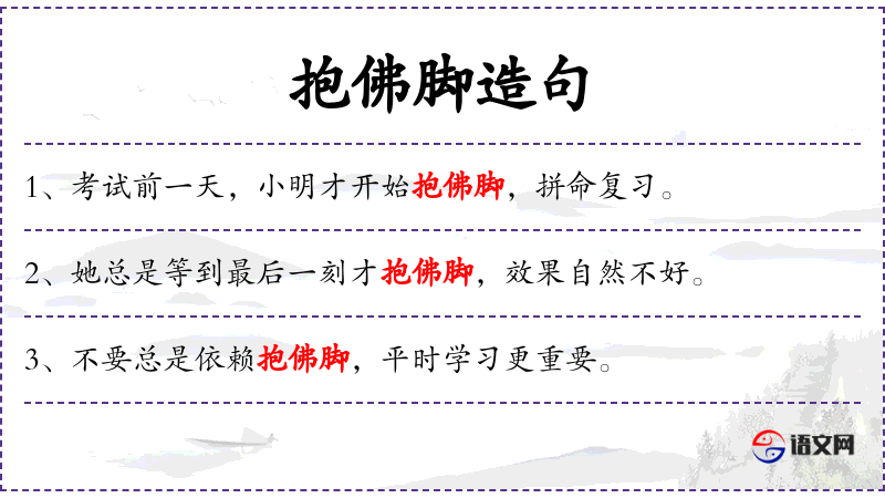 - “抱佛脚”:临时抱佛脚、临阵磨枪