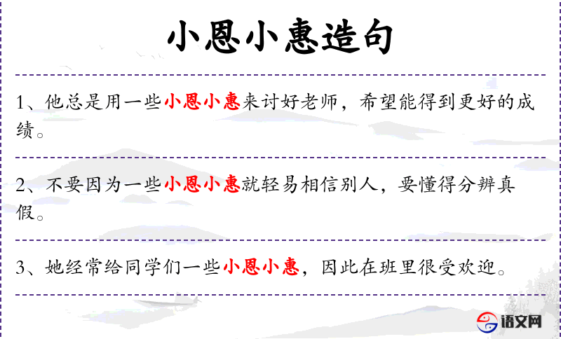 - 小恩小惠:成语,指微小的恩惠或好处。