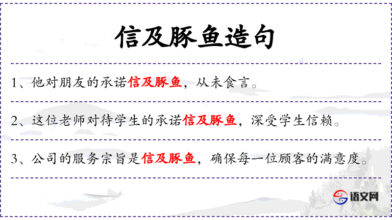 - 信如豚鱼:比喻老师的承诺非常可靠,如同豚鱼一样珍贵和可信。